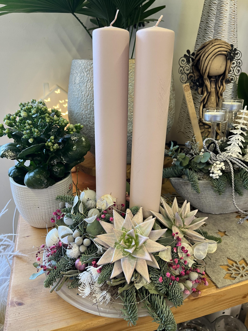 Vítejte v naší vánoční oáze. Objevte kouzlo Vánoc s našimi ručně vyráběnými adventními věnci a jedinečnými dekoracemi.